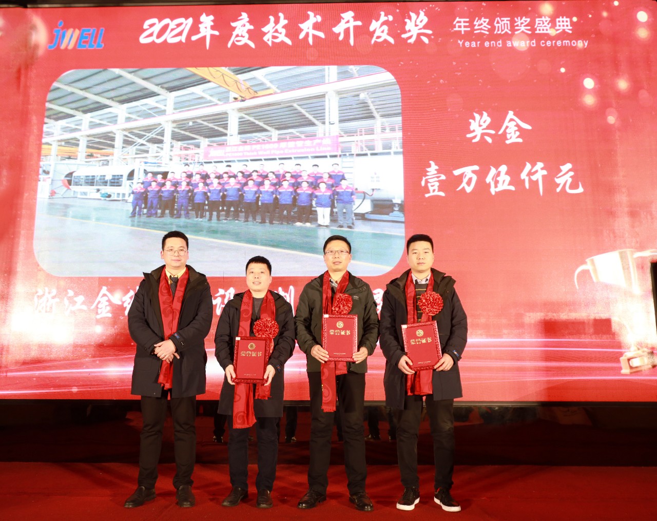 金牛俯首辞旧岁,瑞虎腾跃迎新春。2022年1月27日,金纬机械海宁厂区在海州大饭店隆重举办了2022年迎新春答谢晚宴。来自各公司股东、董事会成员、专业公司总经理、部分客户和供应商代表、合作伙伴、部分优秀员工家属近300人欢聚一堂,举杯同庆,共享2021斐然业绩,展望2022新辉煌。