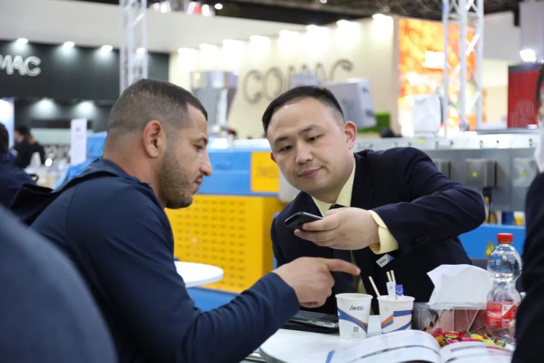 展会的每一天我们都会遇到许多客户总是带着各种各样的问题来咨询我们,无论何种语言和国度;无论从原料、机械到制品终端,对我们来说都是学习和成长的过程,当我们走在一起,分享彼此的知识、经验和见解,问题就不再是问题,而是前行的喜悦。在现场我们把最好的产品和技术展示给客户,寻找到最好的合作伙伴;另一方面把展会中找到的最好项目带回来,通过团队优化升级,形成一个良性的闭环。